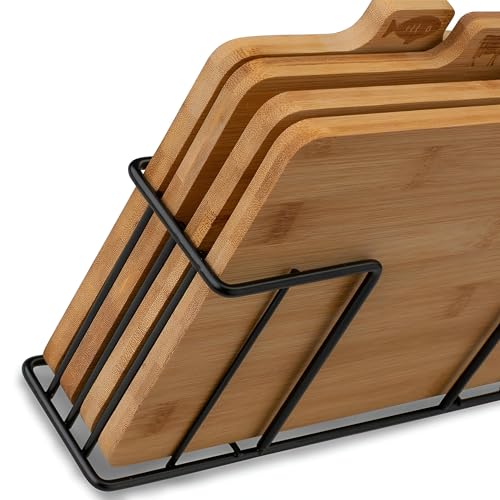 Generic - مجموعة الواح تقطيع من الخيزران مكونة من 4 قطع مع رف معدني - اسطح تقطيع متينة وصحية مع ايقونات حيوانات مرمزة باللون، ابعاد 28 × 20 × 1 سم، مثالية للحوم والخضروات واعداد الخبز مع قاعدة مدمجة