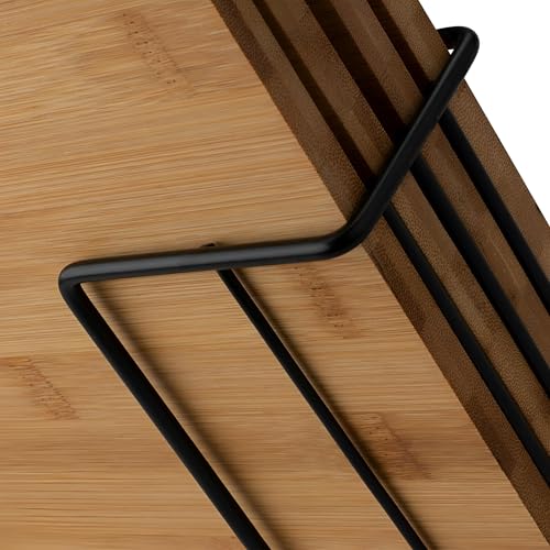 - يبلغ مقاس الحامل المعدني الأسود المتضمن 29 × 7 × 12.5 سم ويحمل جميع الألواح الأربعة بشكل مستقيم بشكل آمن، مما يعزز التنظيم الفعال والوصول السريع وسطح الطاولة الخالي من الفوضى مع تعزيز المظهر الجمالي للمطبخ.