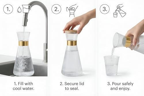 - يشمل هذا الطقم الأنيق زجاجة تقديم شفافة مضلعة بسعة 1 لتر مصنوعة من الزجاج الكريستالي، مع غطاء من البامبو الطبيعي لعرض الماء أو العصير أو الشاي بمظهر راقٍ.