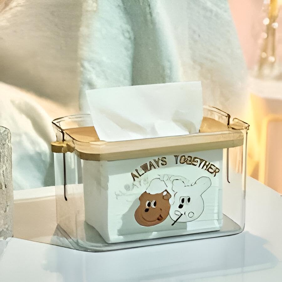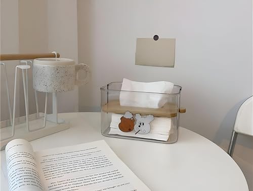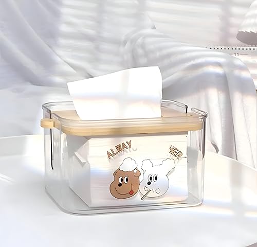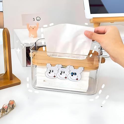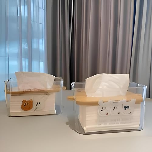 Generic - علبة مناديل بغطاء من الخيزران - صندوق اكريليك انيق يتميز بمادة مقاومة للصدمات وآلية دفع لاسفل واختيار شكل عشوائي لديكور المنزل والمكتب