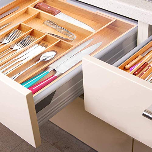 - ➤ مثالية للتخزين، صناديق أدراج التخزين بطول 17.9 انش وعمق 1.2 انش وعرض 14 انش (تمتد إلى 21 انش)، تلتصق بمعظم الأدراج، وحجرتان قابلتان للتوسيع تساعدان على تنظيم جميع أدوات المائدة والأواني الفضية. 7-9 مساحات تخزين تسمح لك بفرز المزيد من الأشياء. يتم تنظيف مواد الخيزران ببساطة بسرعة بالماء الدافئ ثم مسحها بقطعة قماش مبللة.