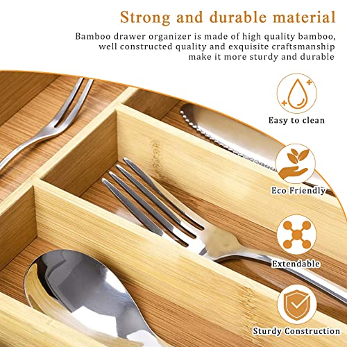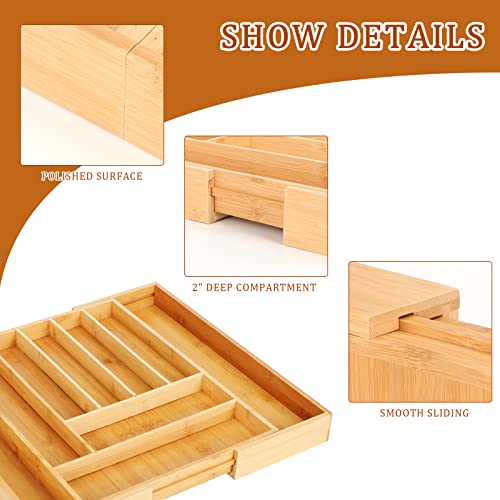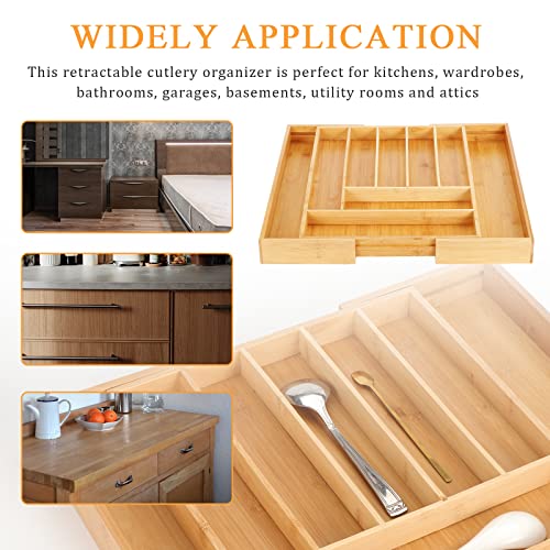 NIUBB - صينية ادوات مائدة من الخيزران للادراج، درج قابل للتعديل لادراج المطبخ، صينية ادوات مائدة للمطبخ مع 7 الى 9 مساحات تخزين