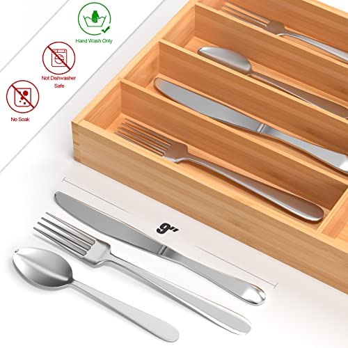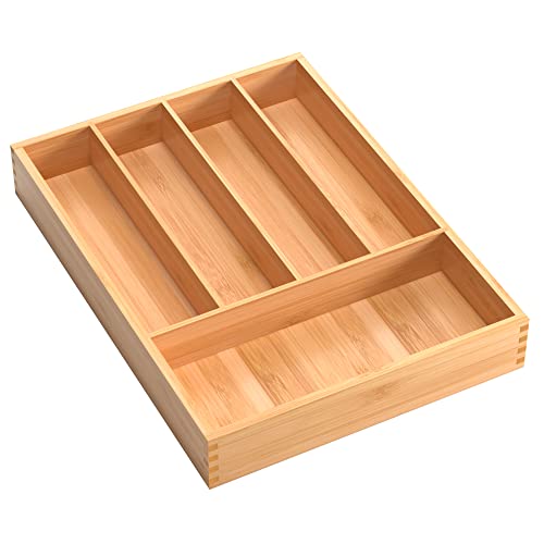 Zri Bamboo - صينية ادوات تناول الطعام من الخيزران، ادوات المطبخ، ادوات المائدة الفضية، فواصل منظم ادراج مع 5 مساحات تخزين