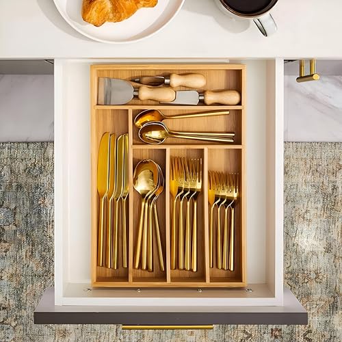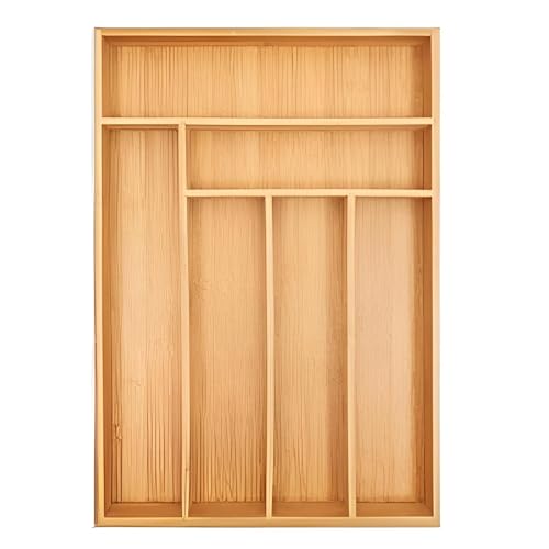 Generic - صينية ادوات مائدة من الخيزران - تصميم فريد وعملي مع 7 فتحات للشوك والسكاكين والملاعق - سهلة الصيانة وتناسب جميع الادراج الكبيرة 42 × 35 سم لتنظيم مثالي