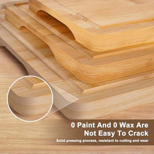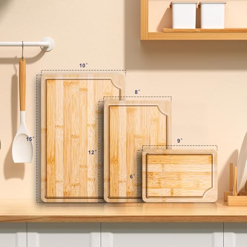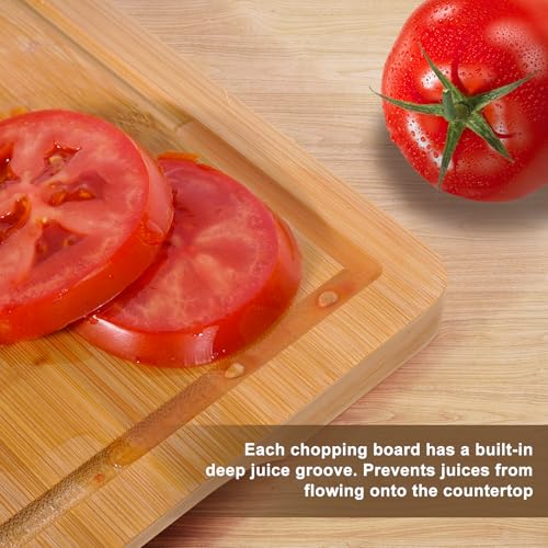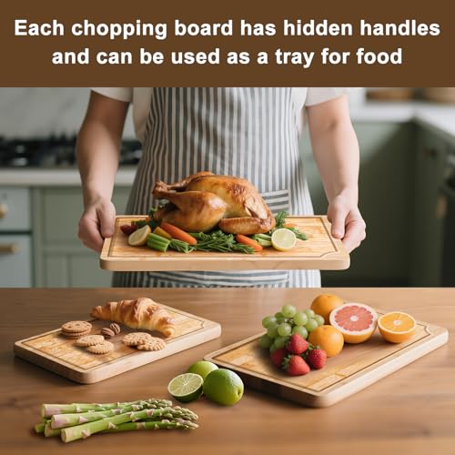 IrRadiko - لوح تقطيع من الخيزران - مجموعة من 3 قطع، لوح تقطيع من الخيزران للمطبخ مع فتحة عصير ومقبض مدمج، يستخدم للطهي واللحوم والخضروات والطعام المطبوخ