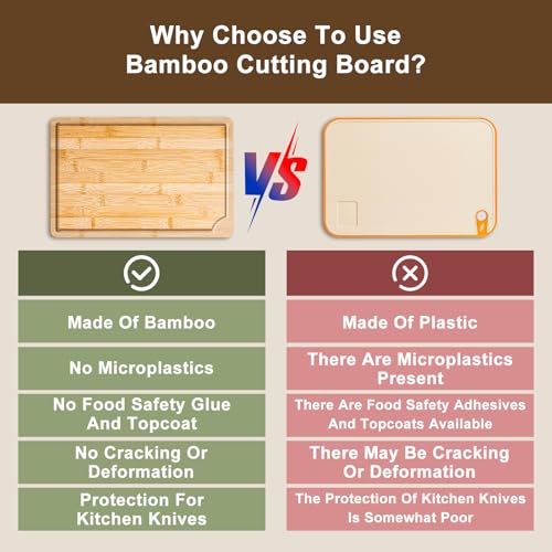 - هيكل متين ومرن: صُممت ألواح التقطيع المصنوعة من الخيزران لأداء طويل الأمد، وتقاوم علامات السكاكين والاعوجاج والتشقق بشكل أفضل من العديد من الأخشاب الأكثر نعومة، مما يضمن سنوات من الاستخدام الموثوق.