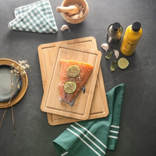 - [مادة فاخرة] مصنوع من الخيزران المعتمد من الدرجة الغذائية في الاتحاد الأوروبي، يوفر لوح التقطيع الخشبي هذا متانة وقوة فائقة للاستخدام اليومي