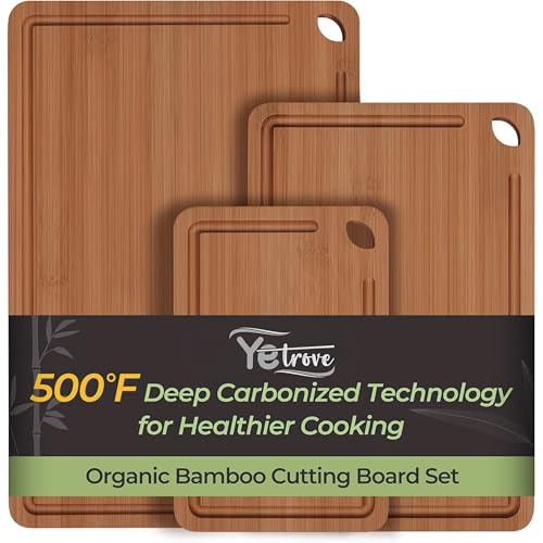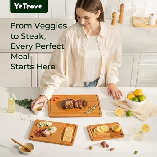 YeTrove - لوح تقطيع من الخيزران، الواح تقطيع خشبية متينة للمطبخ مع اخاديد عصير عميقة ومقابض مدمجة، مثالية لتقطيع اللحوم والخضروات والفواكه، هدية مثالية للمطبخ