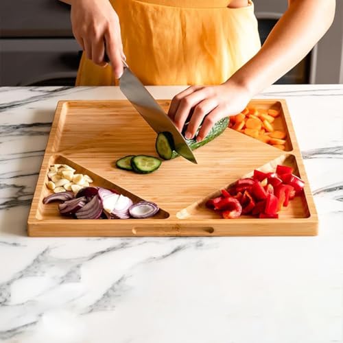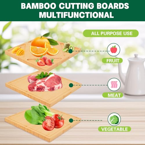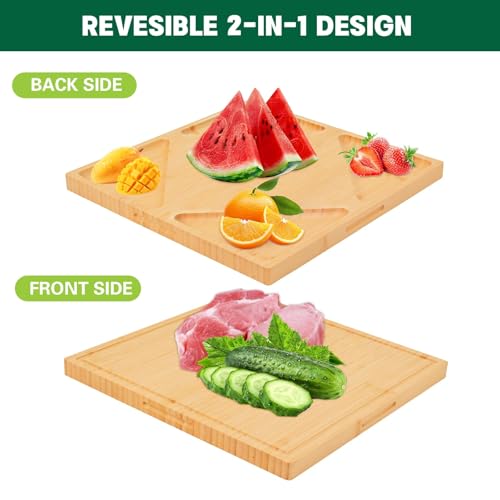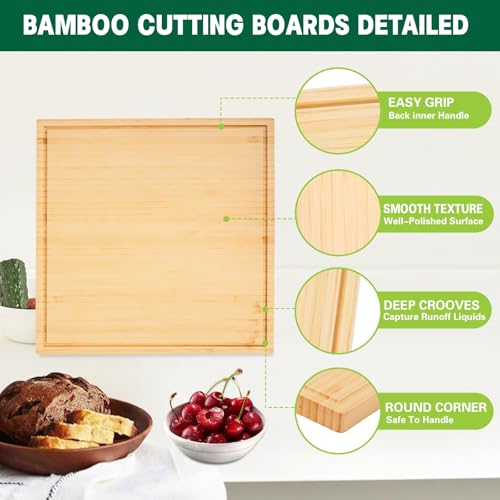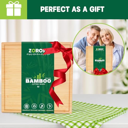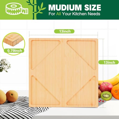 ZOROSY - لوح تقطيع من الخيزران للمطبخ - الواح تقطيع خشبية مقاس 13 انش مع اخدود للعصير ومقابض، لوح تقطيع خشبي للحوم والجبن والفواكه والخضروات - مسبق الزيت (13 انش × 13 انش)