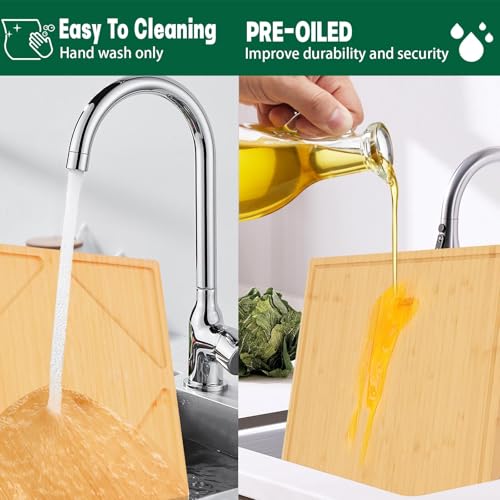 - حرفية فائقة: تتميز ألواح التقطيع الخاصة بنا بحرفية رائعة تضمن المتانة وسطح غير قابل للانزلاق. كل قطعة مصقولة بعناية وناعمة ومسطحة بدون نتوءات أو تشققات أو رقائق وما إلى ذلك. مع زيت الطهي، لن يترك لوح التقطيع المصنوع من الخيزران أي خدوش أو علامات. يسهل العناية بها، اغسلها تحت الماء الجاري واتركها تجف في الهواء. لا تضعه في غسالة الصحون