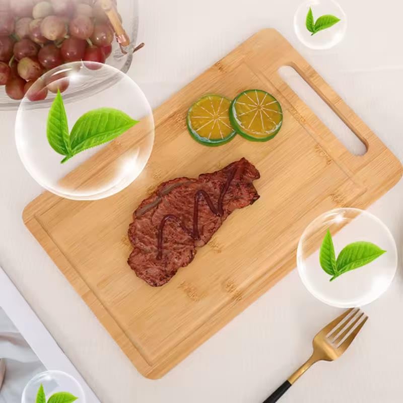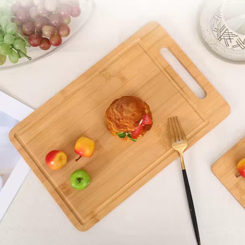 Generic - لوح تقطيع من خشب البامبو شديد التحمل مع فتحة لتجميع السوائل لوح تقطيع سميك ومتين للمطبخ وصينية لتقديم الطعام متعدد الاغراض للحوم والجبن والخضروات مقاس 33*23