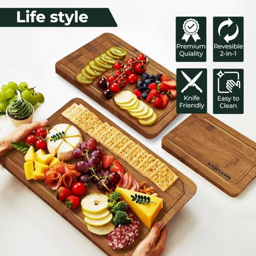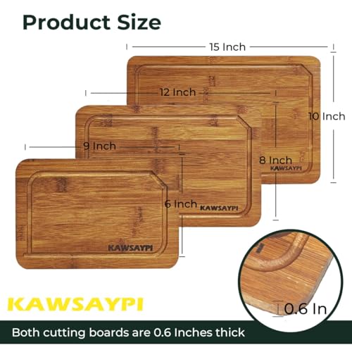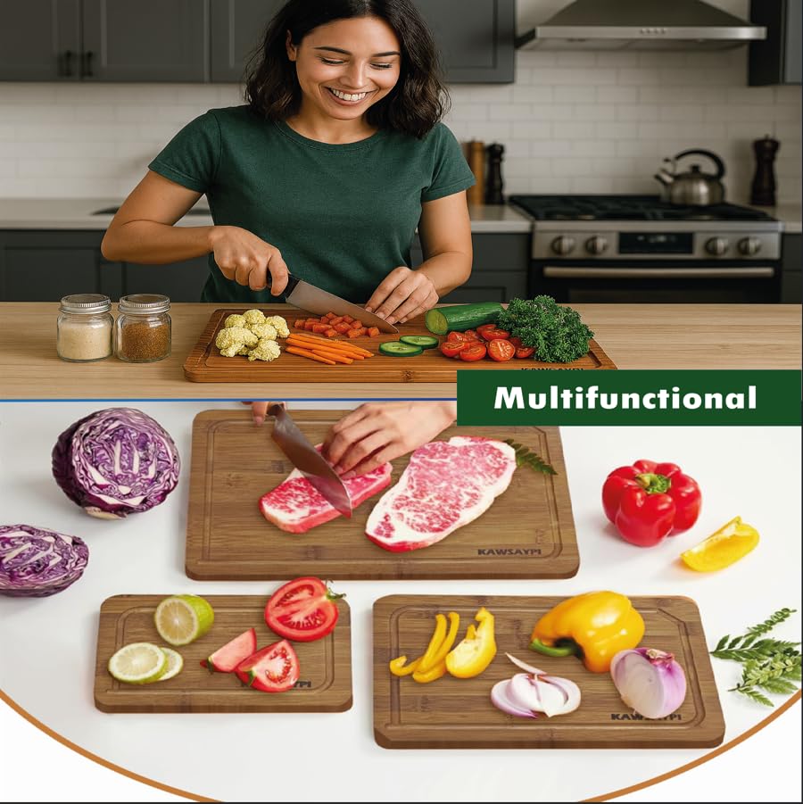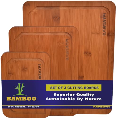 kawsaypi - مجموعة الواح تقطيع من الخيزران - طبيعية 100% ومتينة - سطح كبير وقوي للمطبخ، عضوية - مثالية لتقطيع اللحوم والخضروات والفواكه. (بني بامبو)