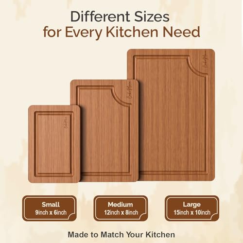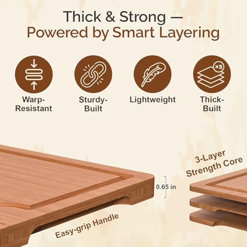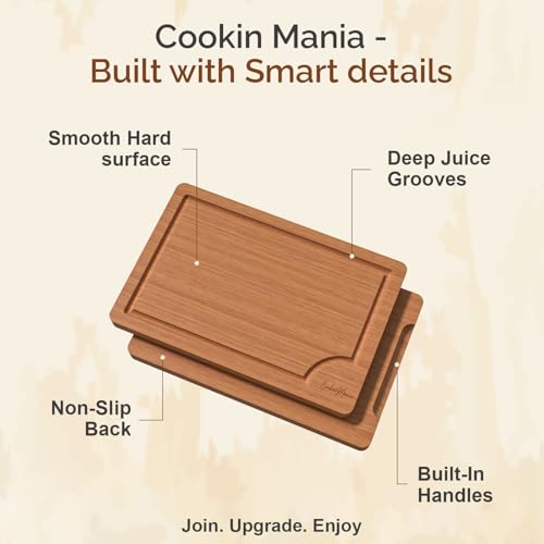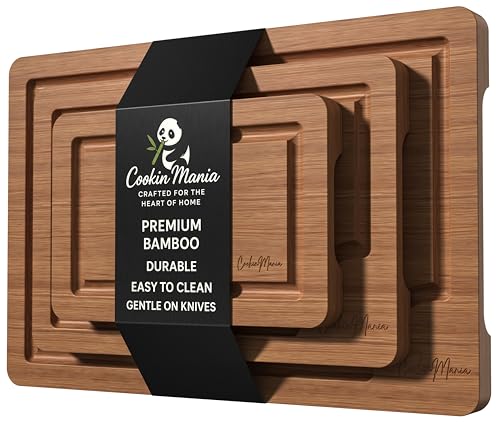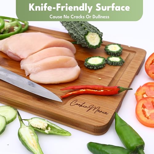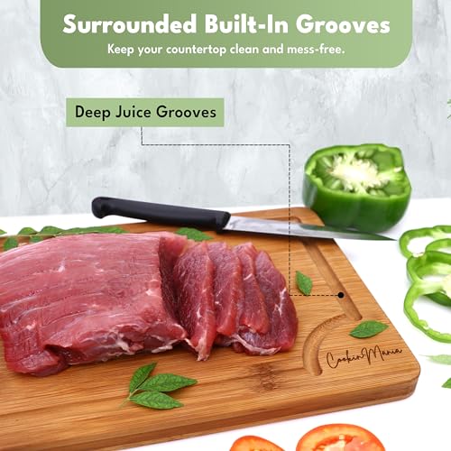 Cookin Mania - لوح تقطيع من خشب الخيزران للمطبخ مزود بأخدود عميق للعصارة مزدوج الوجه متين مع مقابض مدمجة مناسب لتقديم اللحوم والجبن وتقطيع اللحوم والخضروات