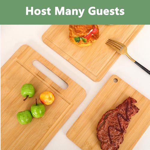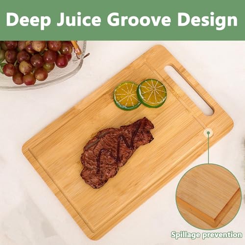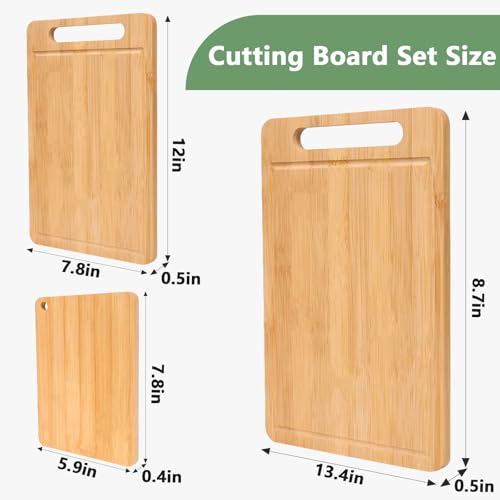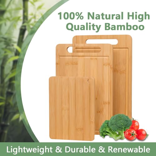 Gusweet - مجموعة من 3 ألواح تقطيع من الخيزران للمطبخ، لوح تقطيع سميك مع تجويفات لتجميع السوائل، مقبض سهل الإمساك وفتحة خطاف، لوح جزار للمطبخ واللحوم والخضروات والفواكه والجبن