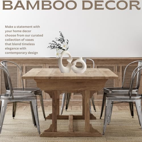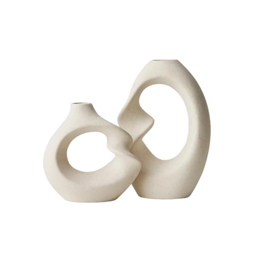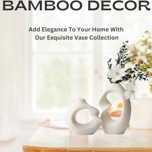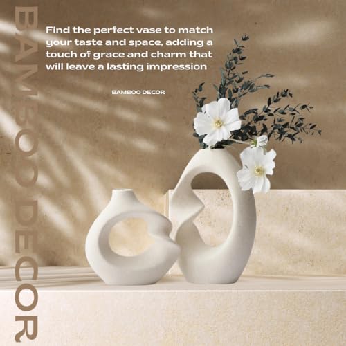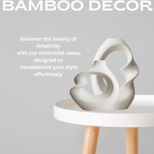 Bamboo Decor - بامبو ديكور| مزهرية سيراميك عصرية بتصميم بسيط _ نمط اسكندنافي للزهور والنباتات المجففة وديكور بوهيمي لطاولة الطعام (توأم D بيج 21 سم)