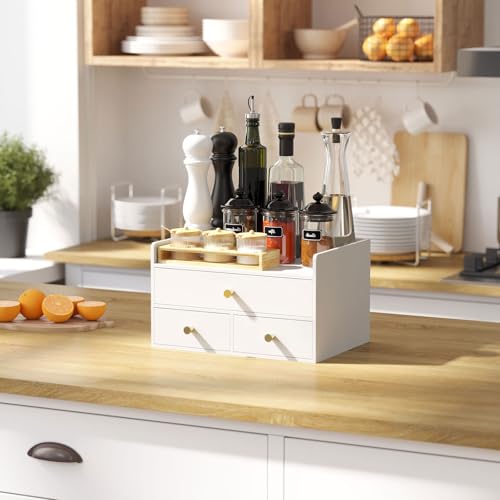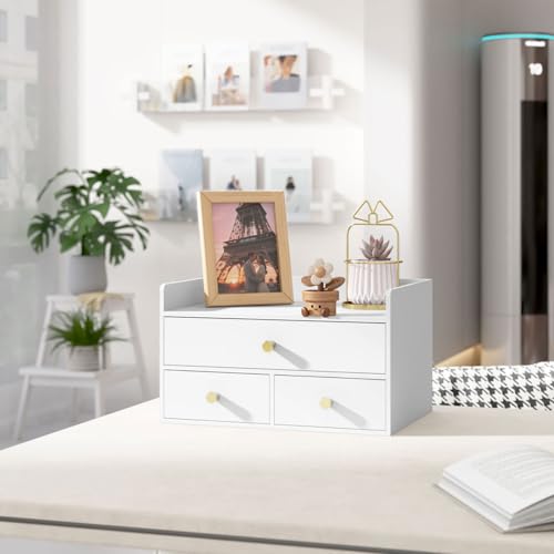 APRTAT - منظم مكتب من الخيزران مع ادراج، صندوق تخزين خشبي لسطح المكتب للفواتير، لوازم المكتب، ادوات المطبخ، ادوات تنظيم للمنزل والفصول الدراسية، لا يحتاج الى تجميع (3 ادراج، ابيض)