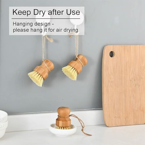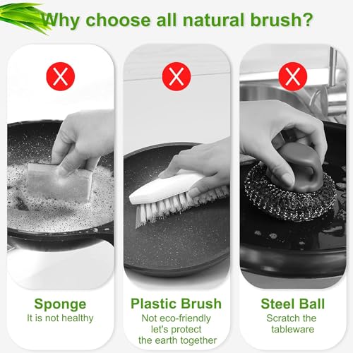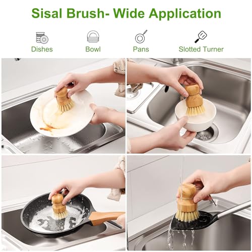 SWIUKPHE - فرشاة تنظيف الاطباق المصنوعة من الخيزران لحوض المطبخ، فرشاة غسيل الاطباق الخشبية الطبيعية، فرشاة سيزال للتنظيف المنزلي من الحديد الزهر والاواني والمقالي والخضروات