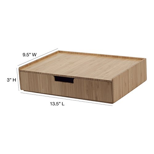 - أبعاد درج الخيزران الكبير: (34.29 سم × 24.13 سم × 7.62 سم) عمق الدرج الداخلي 5.1 سم