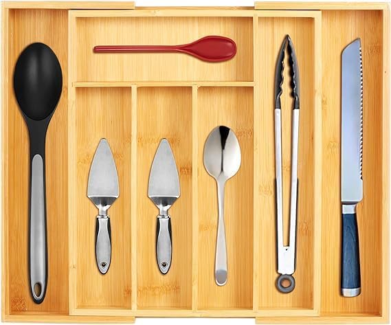 - استخدام متعدد الأغراض: يمكن استخدام منظم الأدراج هذا لحفظ الأشياء الصغيرة مثل أدوات المائدة والمجوهرات والقرطاسية والأدوات. يمكن استخدامه في المطبخ وغرفة المعيشة وغرفة النوم وغرفة المرافق وغيرها. مناسب للاستخدام مع العديد من العناصر في مناسبات متعددة. منظم أدوات قابل للتوسيع والتعديل: يمكن لمنظم الأدوات الفضية المُصمم بـ 6 - 8 أقسام تخزين، توفير المساحة مع استيعاب العديد من الأدوات، كما أنه قابل للتوسيع من 33.02 سم إلى 49.78 سم وبانزلاق سلس. خيزران ممتاز مثالي: الصينية المنظمة لأدوات المائدة المصنوعة من الخيزران تبدو مرتبة وأنيقة. يتم حصاد الخيزران لدينا المستخدم