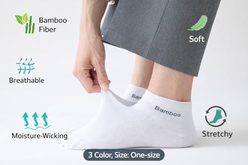 Generic - شرابات كاحل قصيرة من ألياف البامبو، ماصة للرطوبة ومقاومة للروائح، مناسبة للملابس الكاجوال والرسمية، مقاسات 39-44، لون أبيض