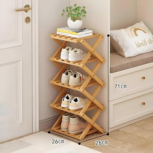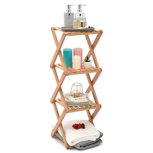 Generic - رف قابل للطي من الخيزران - منظم تخزين من 4 طبقات من الخشب الطبيعي بتصميم موفر للمساحة، مثالي لغرف المعيشة والحمامات والمطابخ، ارتفاع 71 سم للتخزين الرأسي الأمثل. (4 دور)
