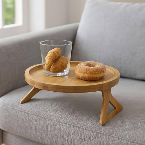 Generic - صينية قابلة للطي من الخيزران، صينية مسند ذراع للكنبة، مكتب للكنبة للمشروبات والوجبات الخفيفة والجوال وجهاز التحكم عن بعد. حامل خشبي لمسند الذراع والوجبات الخفيفة لغرفة المعيشة. طاولة بذراع الاريكة