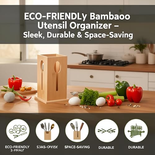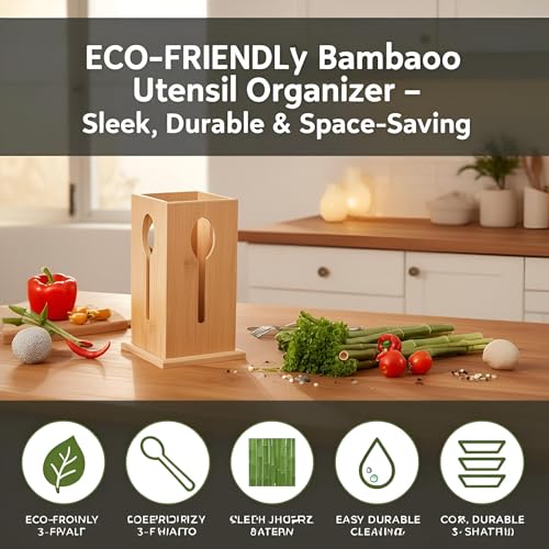 Generic - حامل من الخيزران - صندوق تخزين ادوات تناول الطعام الأنيق بتصميم عصري، مساحات تخزين واسعة لعيدان الطعام والشوك والملاعق والسكاكين، مما يضمن تنظيمًا أنيقًا في المنزل والاستخدام الخارجي لتناول الطعام