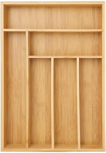Generic - حامل خيزران - منظم درج متعدد الفتحات مع 7 مساحات تخزين للاواني المختلفة، سهل الصيانة، يعزز حل التخزين الأنيق للادراج كبيرة الحجم بتصميم طبيعي مستدام