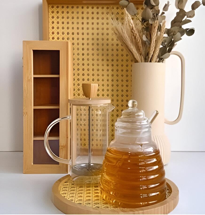 - بتصميم كلاسيكي، يُعد هذا الجهاز لتحضير القهوة الفرنسي ليس فقط أداة تحضير عملية، بل أيضًا إضافة أنيقة لمطبخك. صُنع من مواد صديقة للبيئة مثل الخيزران والفلين، مما يوفر جاذبية مستدامة وجمالية تظل خالدة.