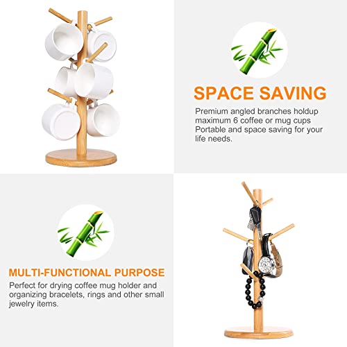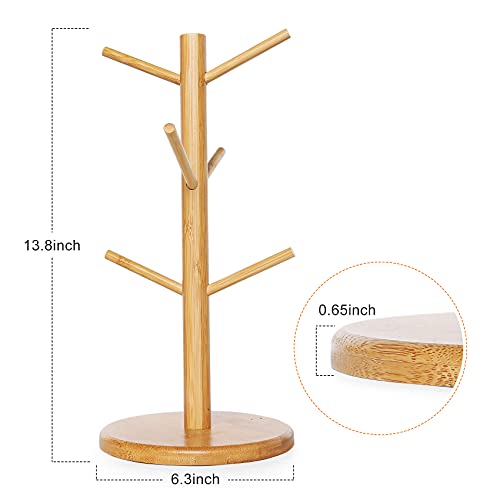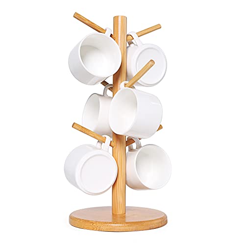 Maxcocola - حامل اكواب على شكل شجرة لسطح الطاولة رف من الخيزران منظم الشاي ملحق طاولة القهوة ومنظم المطبخ مع 6 خطافات