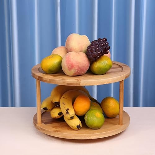 Generic - حامل منظم من الخيزران، حامل دوار من خشب الخيزران بطبقتين عملي للفاكهة وبرطمانات التوابل وتنظيم أدوات العناية بالبشرة، مقاوم للماء والبكتيريا، تصميم أنيق