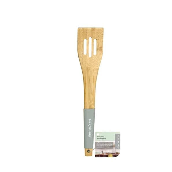 Generic - ملعقة تقديم مكرونة من الخيزران بمقبض من السيليكون، ادوات مطبخ خشبية، لون رمادي