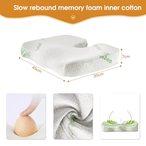 - 【إسفنج ذاكرة فاخر】إسفنج ذاكرة نقي بنسبة 100% لتوفير أقصى درجات الراحة والدعم. تصميم مجوف مريح على شكل حرف U يتكيف مع منحنيات جسمك ويخفف بشكل فعال من ضغط الورك الناتج عن فترات الجلوس الطويلة.