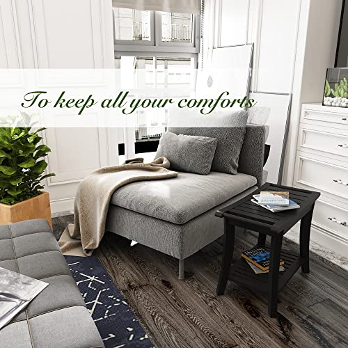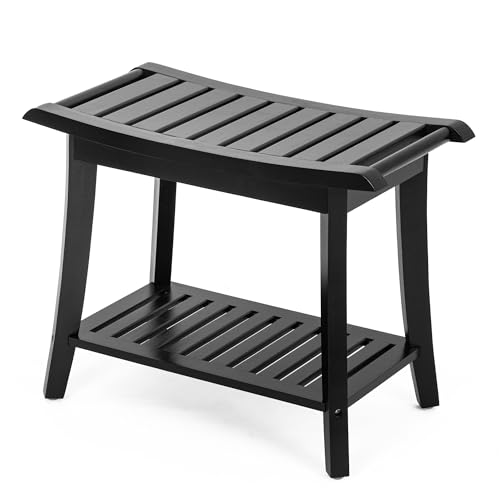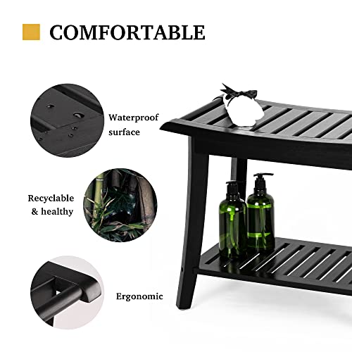 Unibambou - مقعد استحمام داخلي من الخيزران مع رف تخزين، كرسي حمام سبا للحمام او المقعد او منظم لغرفة المعيشة وغرفة النوم والحديقة - رائع لجميع الاعمار وكبار السن من الجنسين (مقاوم للماء، اسود)