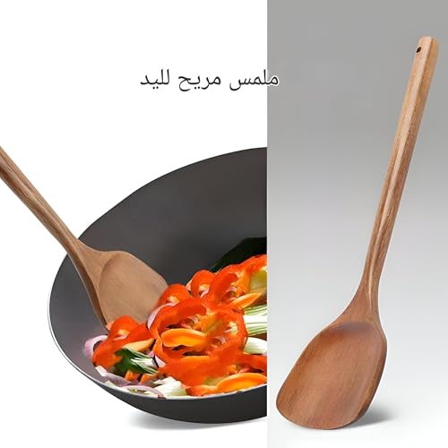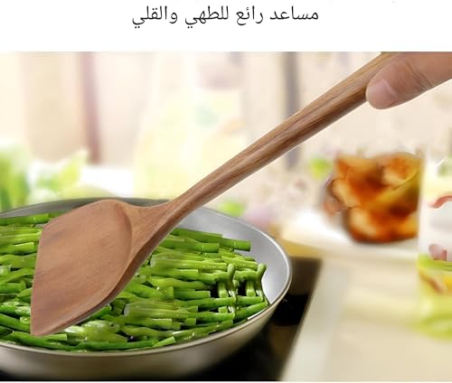 Generic - ملعقة سباتولا من الخيزران - قطعة واحدة من ملعقة مسطحة مصنوعة من الخيزران الطبيعي، أداة مطبخ صديقة للبيئة مع مقبض خشبي متين، مثالية لتقليب البيض والقلي والتقديم (قطعة واحدة)