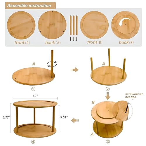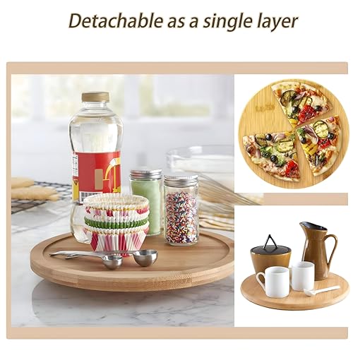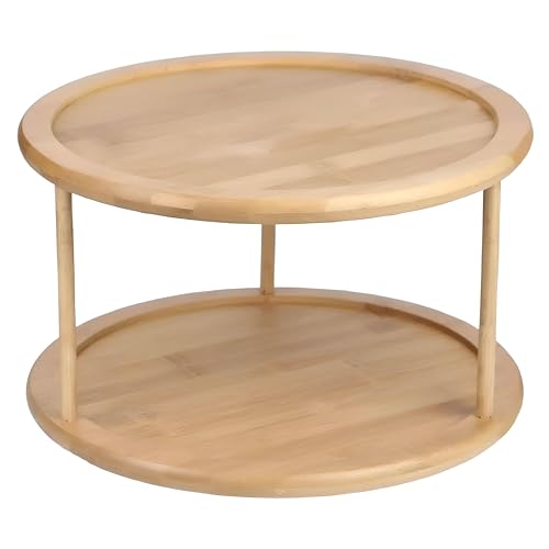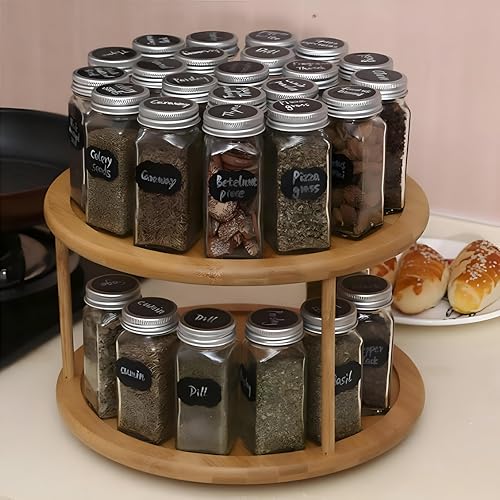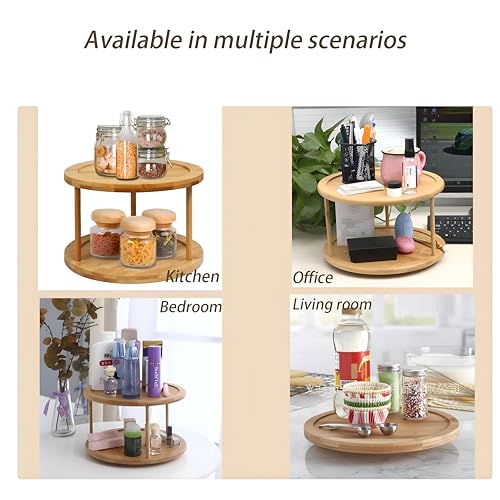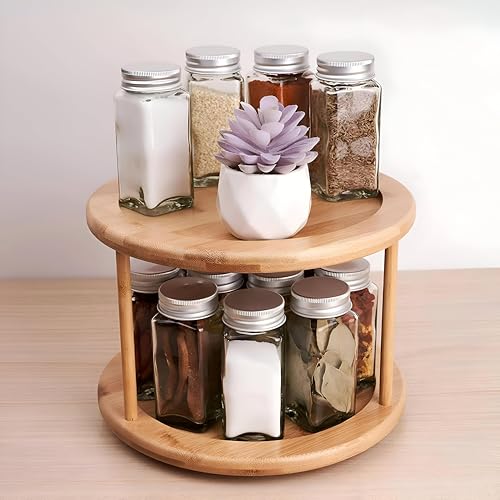 Generic - رف التوابل الخيزران-منظم دوار ثنائي من مستويين لزجاجات العناية بالبشرة وأجرام التوابل ، مصنوعة من الخشب المعالج المقاوم للماء لعرض المطبخ الأنيق (1)