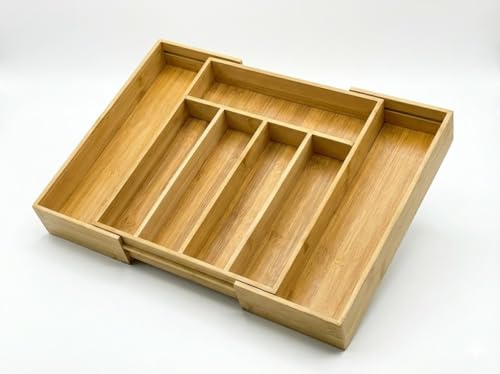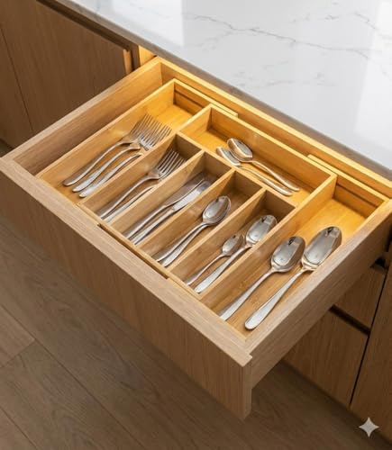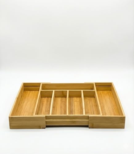 Generic - منظم درج معالق وسكاكين من خشب البامبو – 7 خانات – حجم كبير قابل للتعديل – حامل أدوات مائدة عملي لجميع الأدراج