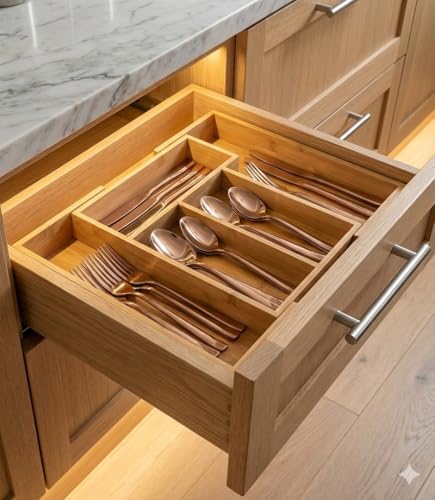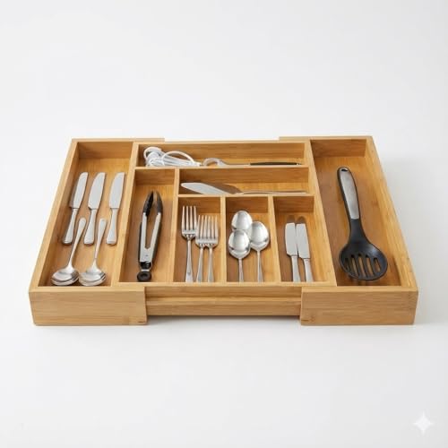 - ✅ 7 خانات تنظيم ذكية – لتنظيم الملاعق، الشوك، السكاكين وأدوات التقديم بسهولة.