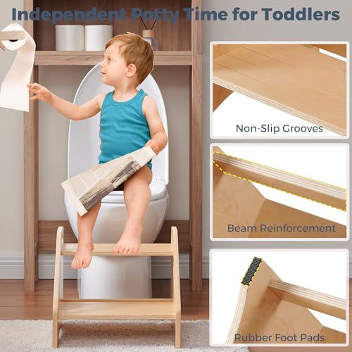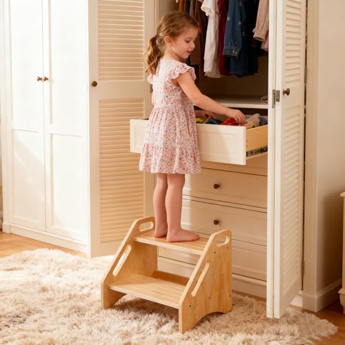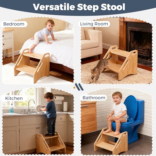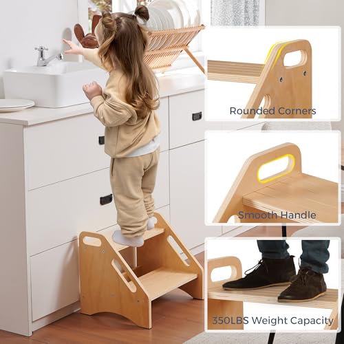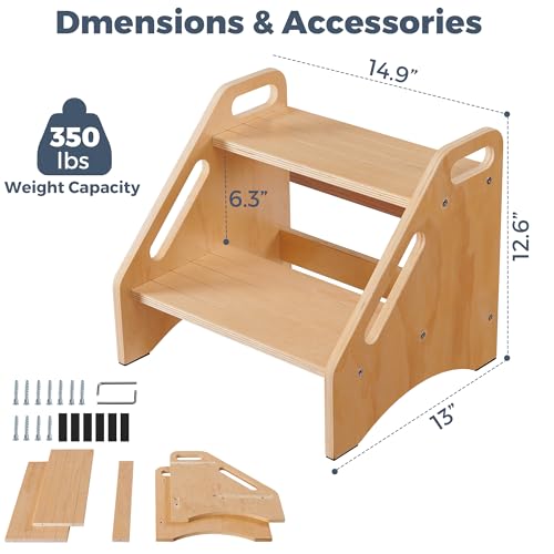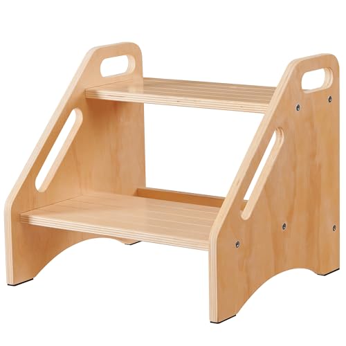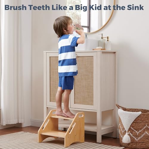 EHEY - مقاعد بدرج من الخيزران للاطفال، مقعد خشبي للمطبخ والحمام وجانب السرير، مقعد مزدوج - يحمل ما يصل الى 350 باوند (خشب طبيعي)