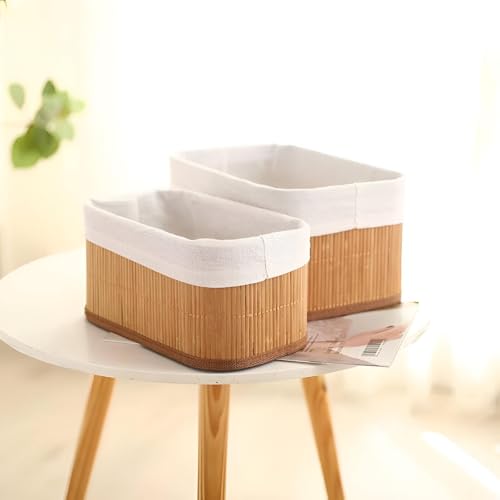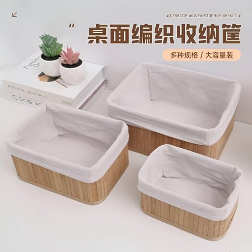 Generic - سلة تخزين خيزران - وعاء بيضاوي مصنوع يدويًا من الخيزران الطبيعي بنسج أصيل، منظم مكتب أنيق للمنزل أو المكتب