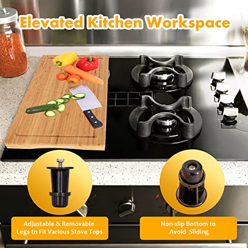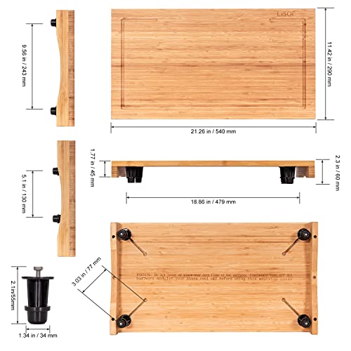 Lynicon - غطاء موقد من الخيزران ولوح تقطيع لسطح الطاولة مع ارجل قابلة للتعديل، لوح تقطيع مزدوج الاغراض للموقد الكهربائي، غطاء مساحة عمل لموقد الغاز والتخييم ار في والتخييم