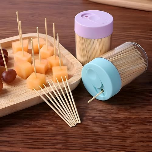 Generic - أعواد أسنان من الخيزران - متينة وصديقة للبيئة مع حامل أنيق قابل لإعادة الاستخدام لتنظيف الأسنان وتقديم الطعام المزخرف (2 عبوه)