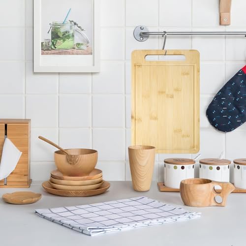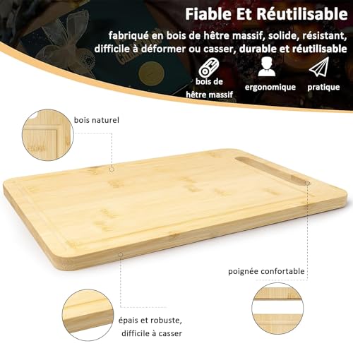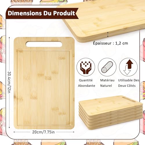 YFNVH - لوح تقطيع من خشب الخيزران، 30 × 28 × 1.2 سم، مجموعة من 5 قطع مع اخدود للعصير - لوح مطبخ للخبز واللحوم والخضروات والفواكه