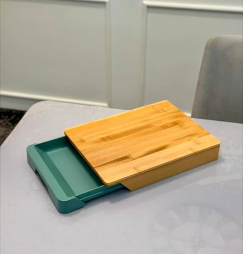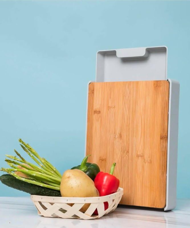 Generic - بلانشة تقطيع بالطبق من خشب بامبو – لوح تقطيع عملي مع طبق مدمج لتجميع الطعام – استخدام مطبخي منظم وسهل التنظيف R