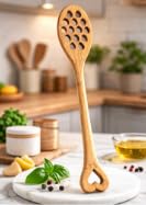 Dollar for Import - ملعقة تقديم مثقبة من خشب البامبو، أداة مطبخ طبيعية مقاومة للحرارة، آمنة على الأواني غير اللاصقة، تصميم أنيق بفتحات زخرفية من دولار للإستيراد الادوات المنزلية