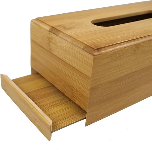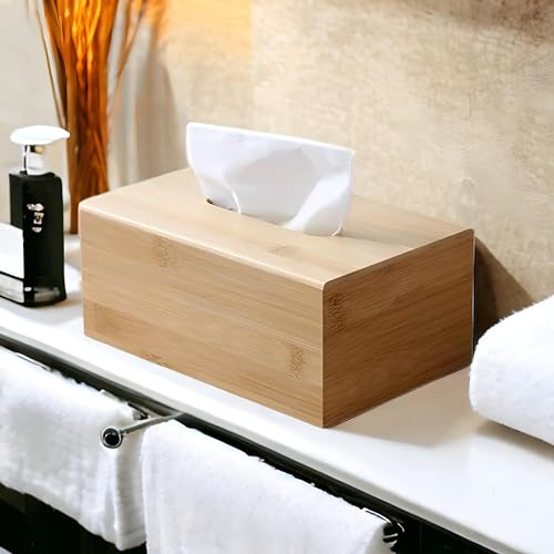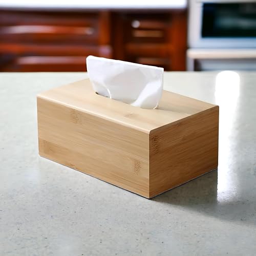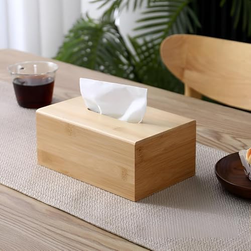 Generic - صندوق مناديل من خشب البامبو - ملحق ديكور منزلي معاصر، سهلة الفتح من الأسفل لتجديد المناديل، سطح مثبط للميكروبات للمسة راقية