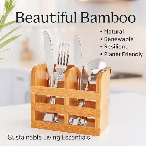 AREXOL - صفاية خشب بامبو معالج لتجفيف الملاعق وأدوات المطبخ اليومية مقاومة للرطوبة ومنظمة للمطبخ