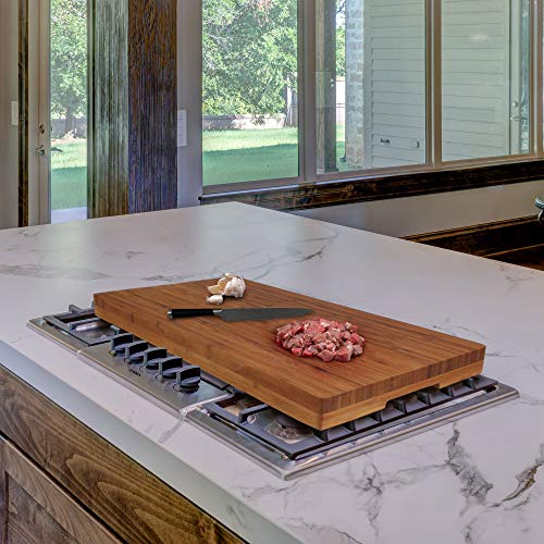 BambooMN - لوح تقطيع وغطاء موقد من الخيزران من بامبو إم إن، خطوط عمودية، حجم كبير جدًا (62.7 سم × 30.5 سم × 3.8 سم)