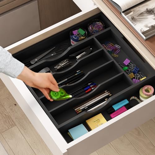 - متعدد الأغراض: حامل أدوات للدرج، ليس فقط منظم أدوات فضية لتخزين الأواني والسكاكين والشوك والملاعق في المطبخ، ولكن يمكن استخدامه أيضًا كمنظم للأدوات ومستحضرات التجميل/المجوهرات وجمع أدوات الرسم وتخزين اللوازم المكتبية. تأكد من قياس أدراجك قبل الشراء.