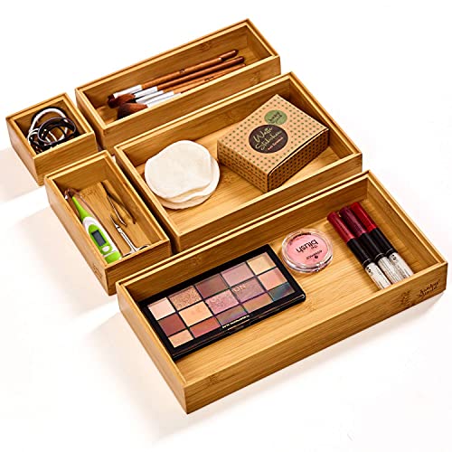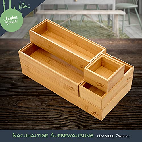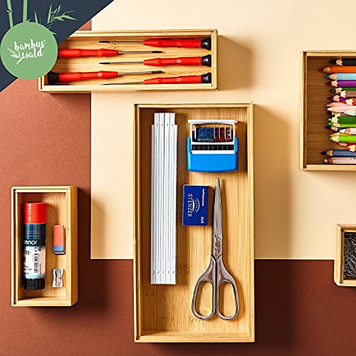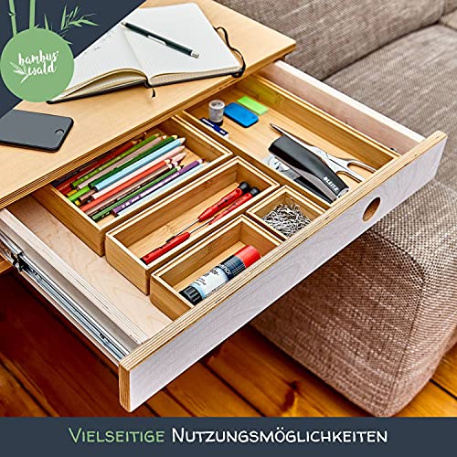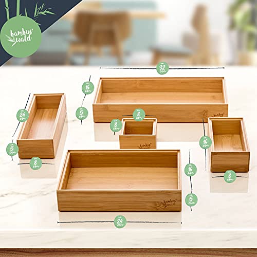 bambuswald - نظام منظم ادراج 5 قطع مصنوع من الخيزران بنسبة 100% | فواصل قابلة للازالة | مكتب | درج مبتكر للمكتب والمطبخ والحمام بامبوسوالد